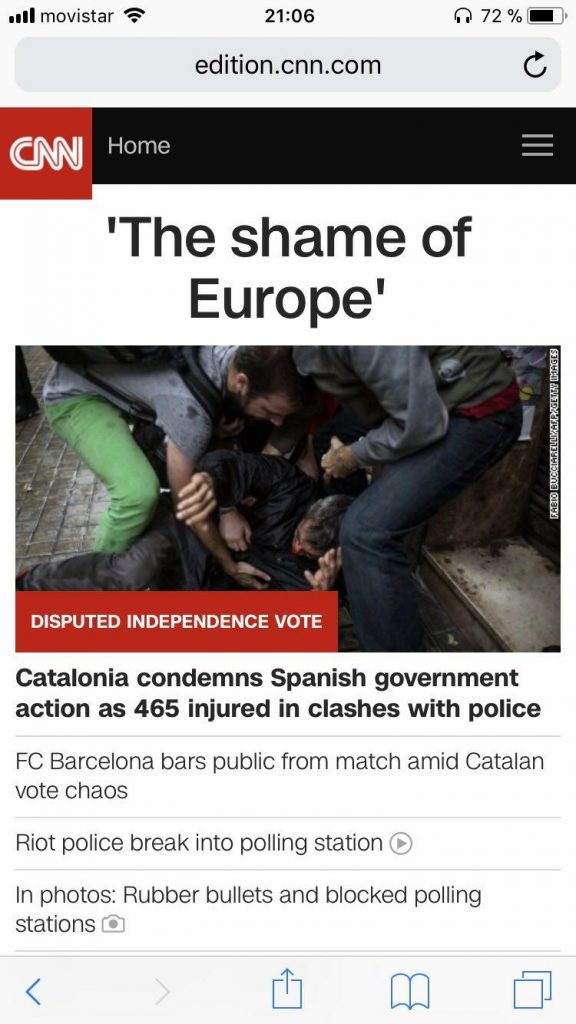 حدث قلب موازين القوى في كتلونيا , مسؤولوا الحكومة الجهوية قرروا تنظيم الاستفتاء رغم المنع الذي اصدرته المحكمة الدستورية , صوت خلالها ما يقرب التلاثة ملايين من سكان كتلونيا لفائدة الاستقلال عن اسبانيا. مريانو راخوي كرئيس الحكومة الاسبانية اصدر اوامره بمنع اجراء الاستفتاء بجميع الوسائل وكان قد جلب افراد الشرطة من كل انحاء اسبانيا و قوات الحرس المدني ايضا. وحين اصرت الجموع على التصويت وقعت الكارثة تدخل عنيف للشرطة نتج عنه العديد من الاعتقالات و ما يقرب الالف مواطن مصاب بجروح متفاوتة . هذا اليوم بالنسبة لكتلونيا الاقليم المشاكس اصبح تاريخيا ويرمز لارادة الانفصال لدى نصف سكان كتلونيا . مازالت تبعات هذا اليوم تتحكم في التجادبات السياسية بين مدريد وبرشلونة , معادلة صعبة وافق غامض .