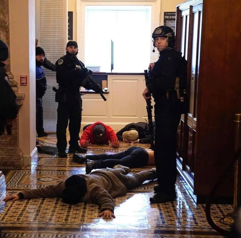 تناولت القنوات الإعلامية الحادث بشتى أوصاف العنف السياسي، ولم تجرأ أي منصة إعلامية على وصفه بأنه “إرهاب داخلي” بالنظر إلى أنه ينطوي على الترهيب ونشر الذعر بين المواطنين ومنهم أعضاء مجلسي النواب والشيوخ. هي لباقة سياسية مفتعلة لأن جميع تعريفات الإرهاب المتداولة، ولدينا 109 تعريف، تشير إلى عنصر الذعر والترهيب. ولو قام شخص عربي أو مسلم واحد بنسبة 1 ٪ مما حدث اليوم، لانتشر خطاب “الإرهاب” بشكل تلقائي.