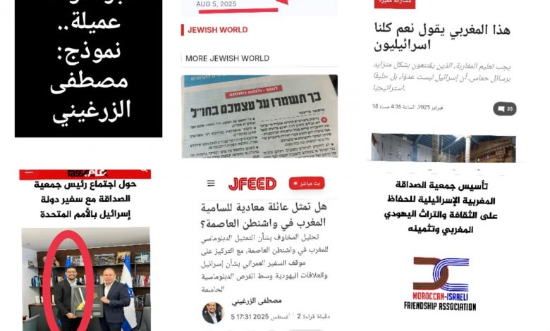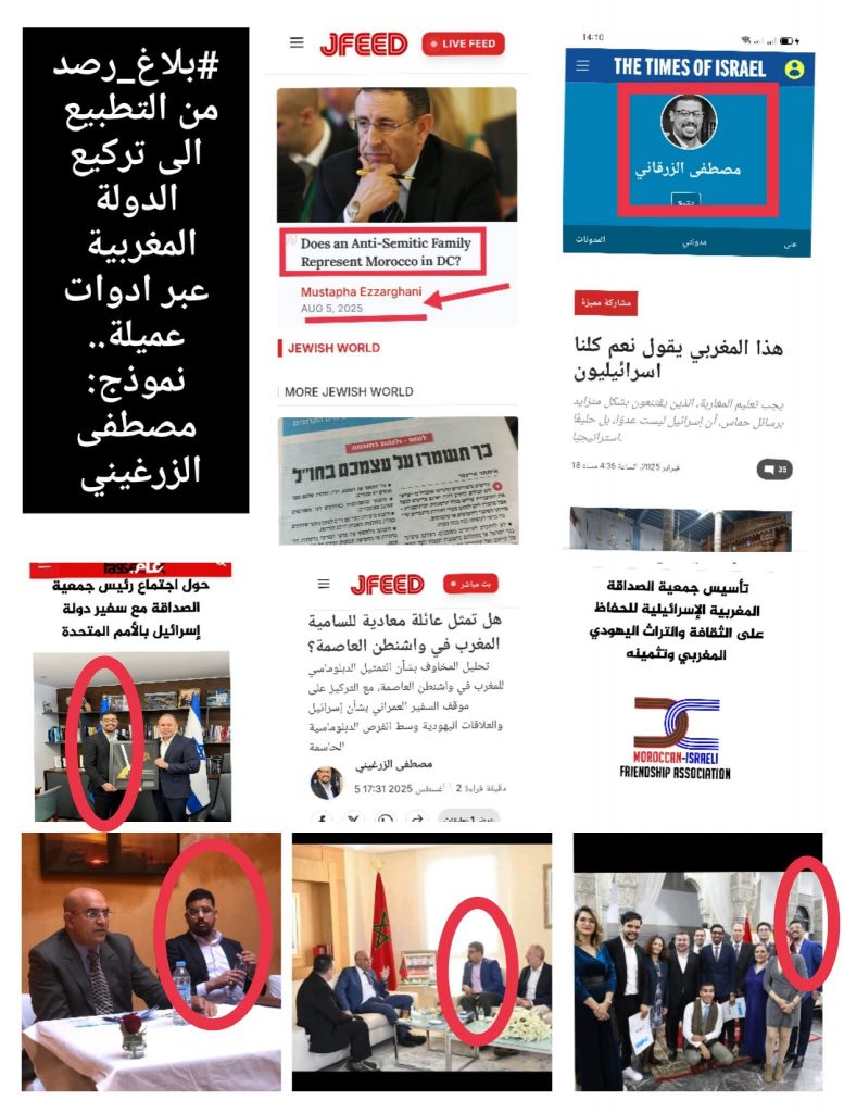 6. المرصد المغربي لمناهضة التطبيع.. وقف على أن المدعو مصطفى الزرغاني و الجمعية المكشوفة التي يشتغل على رأسها.. صار من أدوات خدمة بروباغندا صهيون في امريكا والمغرب .. عبر عضويته و حضوره عددا من المنظمات الصهيونية بأمريكا .. حتى ان السفارة الإسرائيلية في واشنطن أعلنت رعايتها له و دعم جمعيته بشكل رسمي ‼️.. من خلال تصريحات تلت عددا من اللقاءات المتكررة بين المعني بالأمر و السفراء الصهاينة هناك .. مما يطرح أكثر من سؤال حول حقيقة ولاء الشخص وطبيعة “المهام” التي يقوم بها داخل الوطن وفي الخارج ‼️… بل ان السؤال الأهم حول مقالته الفضيحة بشأن السفير المغربي وزوجته …هو ما إذا كان بالحقيقة يعتبر بيانا سياسيا إسرائيليا تجاه الدولة المغربية وموقفها السلبي تجاه إعلان إدانة عملية 7 أكتوبر.. و الاصطفاف الكامل الى جانب تل أبيب في حربها على غزة (حماس) … وتعبير من الصهاينة عن “غضب” من السفارة المغربية (السفير و زوجته) بشأن مواقف ضد حرب الإبادة في غزة (خاصة تغريدات الدكتورة اسماء المرابط زوجة السفير) . والجميع هنا يتذكر توقح اليهود الصهاينة القتلة، من أصل مغربي، على مقام الملك في الرسالة المشهورة التي وقعها باسمهم المدعو سامي أوحيون الذي ألح على الملك أن ينحاز إلى كيان الإبادة الجماعية وإدانة المقاومة الفلسطينية ونعتها بالإرهاب !