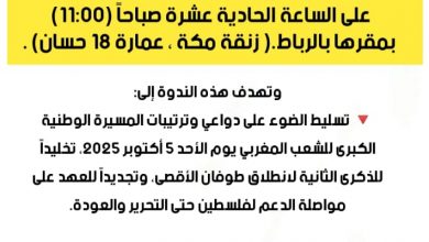 في إطار مواصلة التعبئة الشعبية والوطنية دفاعاً عن فلسطين ومواجهة كل أشكال التواطؤ مع جرائم الاحتلال الصهيوني، تعلن مجموعة العمل…