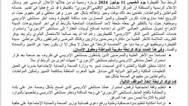 بلاغ ضد استهتار وزارة الصحة والحماية الاجتماعية بتعليمات ملكية المركز الإستشفائي “الزموري “